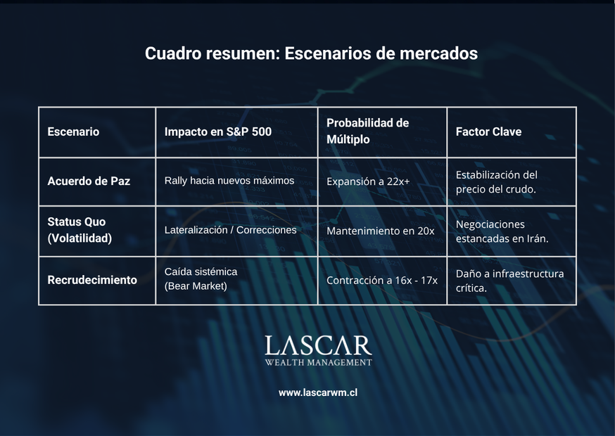 Un agravamiento del conflicto en Medio Oriente —especialmente si afecta la producción o distribución de energía— podría impactar los márgenes de las empresas y gatillar una corrección más profunda en los mercados.